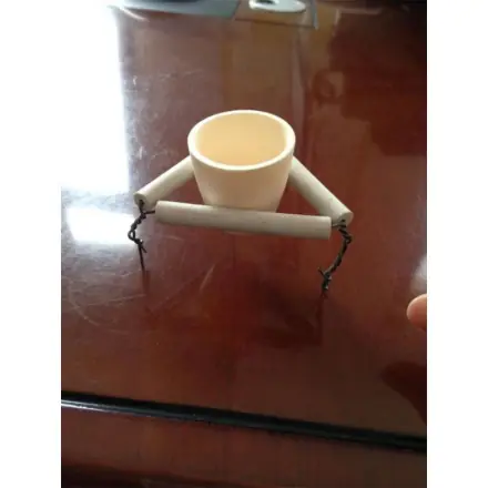 用铁丝扭成,套有瓷管,有大小之分。可用以支撑灼烧坩埚,小蒸发皿加热时也可以用。坩埚放置时坩埚底应横着斜放在三个瓷管中的一个瓷管上。