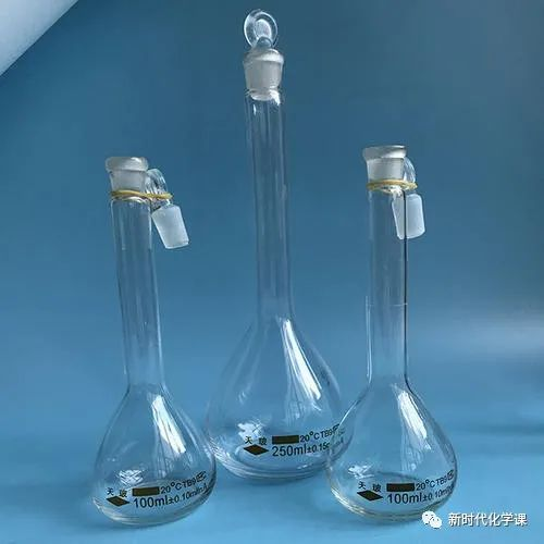 容量瓶是一种细颈梨形平底的容量器,带有磨口玻塞,颈上有标线,表示在所指温度下液体凹液面与容量瓶颈部的标线相切时,溶液体积恰好与瓶上标注的体积相等。容量瓶上标有:温度、容量、刻度线。