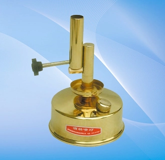 酒精喷灯为实验室加强热用仪器,火焰温度可达1000℃左右,常用于玻璃仪器的加工。常用的酒精喷灯有酒精贮存在灯座内的座式喷灯和酒精贮罐挂于高处的挂式喷灯。